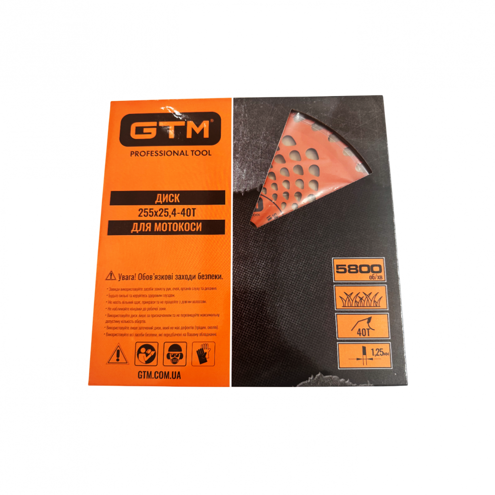 Диск для мотокоси GTM 255?25,4-40T - це надійний ріжучий елемент, призначений для ефективного скошування жорсткої трави, бур’яну, очерету та молодої порослі. Диск оснащений 40 зубами з твердосплавними напайками, що забезпечує високу продуктивність, чистий різ і тривалий строк служби навіть при інтенсивній експлуатації.