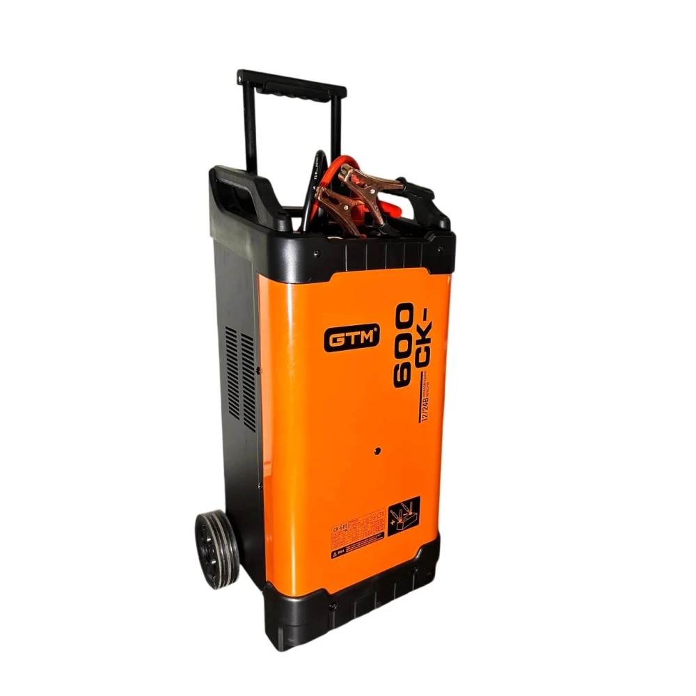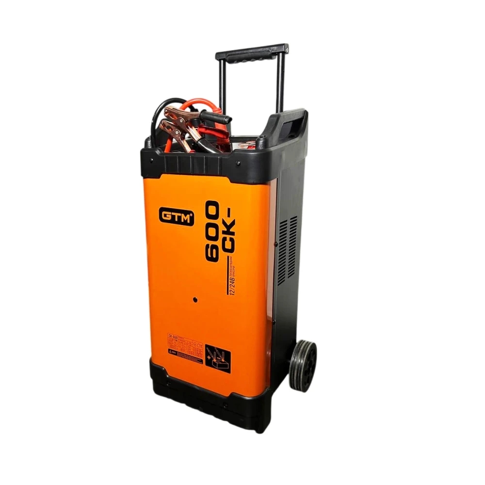 GTM CK-600 — це потужний, легкий та надійний інверторний пускозарядний пристрій професійного класу. Він розроблений для ефективної зарядки широкого спектру акумуляторів (ємністю до 2000 А·год) та швидкого запуску двигунів автомобільної, сільськогосподарської та іншої транспортної техніки, зокрема при повністю розрядженій АКБ.