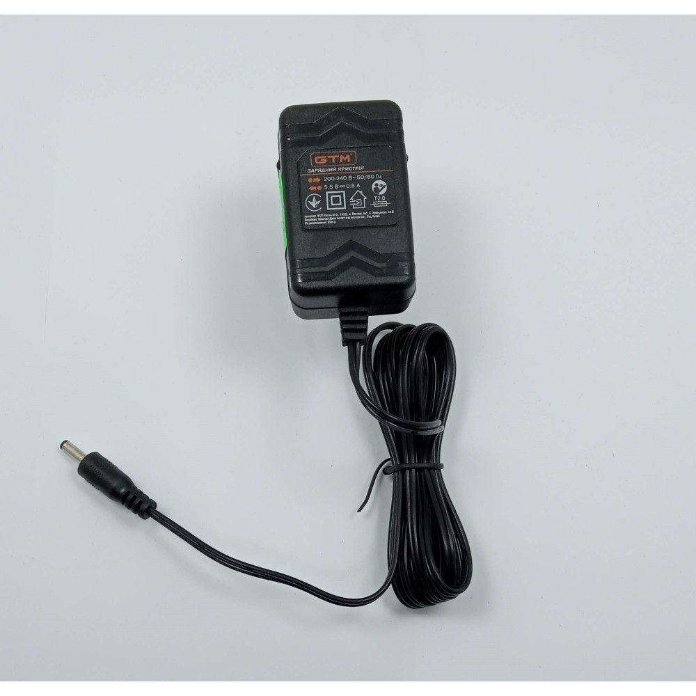 GTM Ch5,5V/0,5А - мережевий зарядний пристрій для акумуляторів GTM з напругою живлення 5.5 В. На корпусі є світлодіодна індикація процесу заряджання.